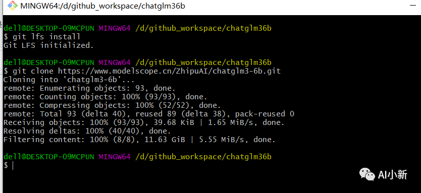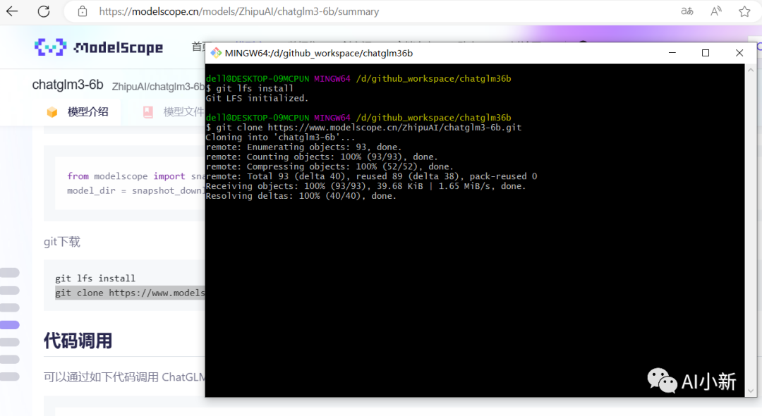 git lfs install``git clone https://www.modelscope.cn/ZhipuAI/chatglm3-6b.git