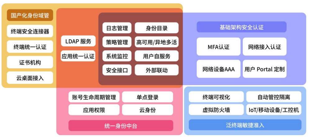 采用多因素认证、有线无线网络认证和网络设备AAA解决企业基础架构层统一认证问题,提高安全性、简化管理并提升用户体验。