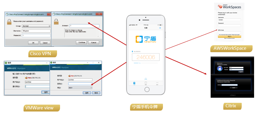 2、**API接口:**宁盾提供http API接口,由应用调用对接宁盾双因子认证服务器,应用需二次改造。