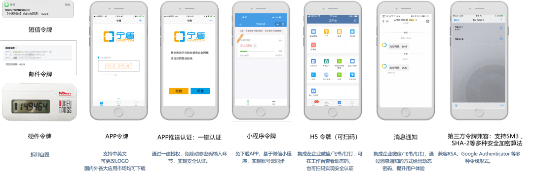 宁盾提供硬件、短信、手机、H5令牌等多令牌形式。