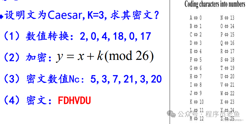 常见的代换密码:单表代换密码(Caesar)、多表代换密码.