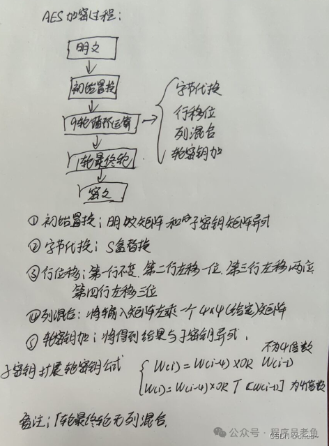 备注:针对不是4的倍数需要关注T函数;T函数的过程包括字循环、字节代换和轮常量异或。