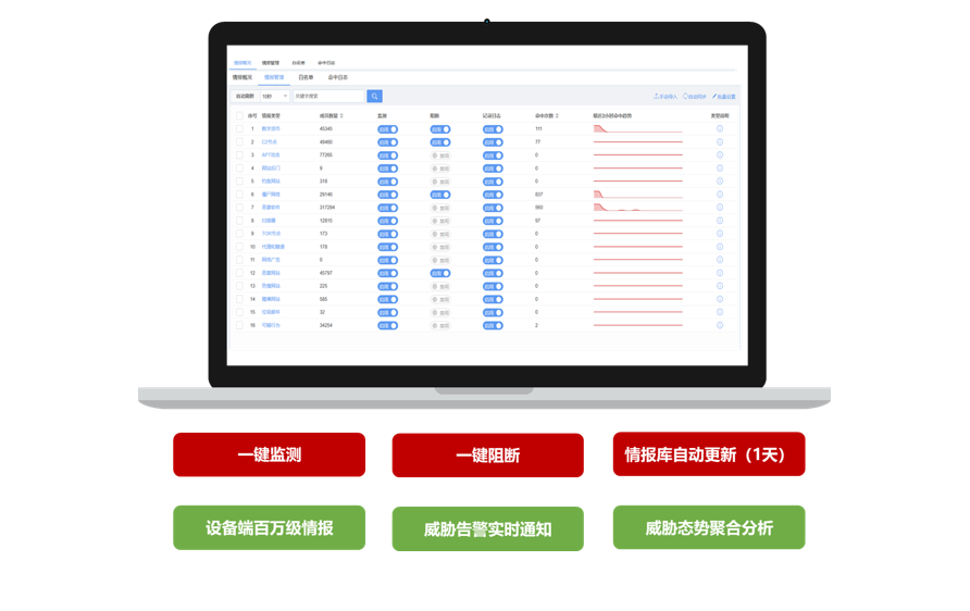 百万数量级威胁情报库,每日动态更新,确保对新威胁的高效识别与响应。