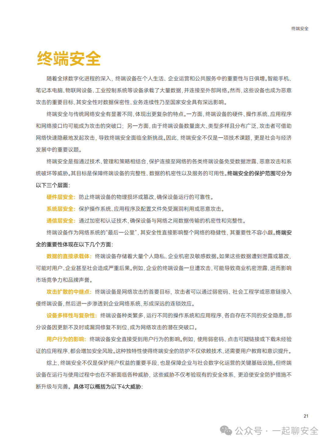 「一起聊安全」公众号及帮会致力于网络安全材料汇总与分享,围绕网络****安全标准、安全政策法规、安全报告及白皮书、安全会议、安全方案、新技术等方向,与FREEBUF知识大陆共建**【一起聊安全】帮会**,目前相关内容已有5300+,安全标准涵盖国标、行标、团标等,包括等保、关基、商密、数据安全、云计算、物联网、工业互联网、移动安全、风险评估、安全攻防等30+方向内容,覆盖最新安全政策法规、安全报告及白皮书等,为网安人提供最新最全资料。