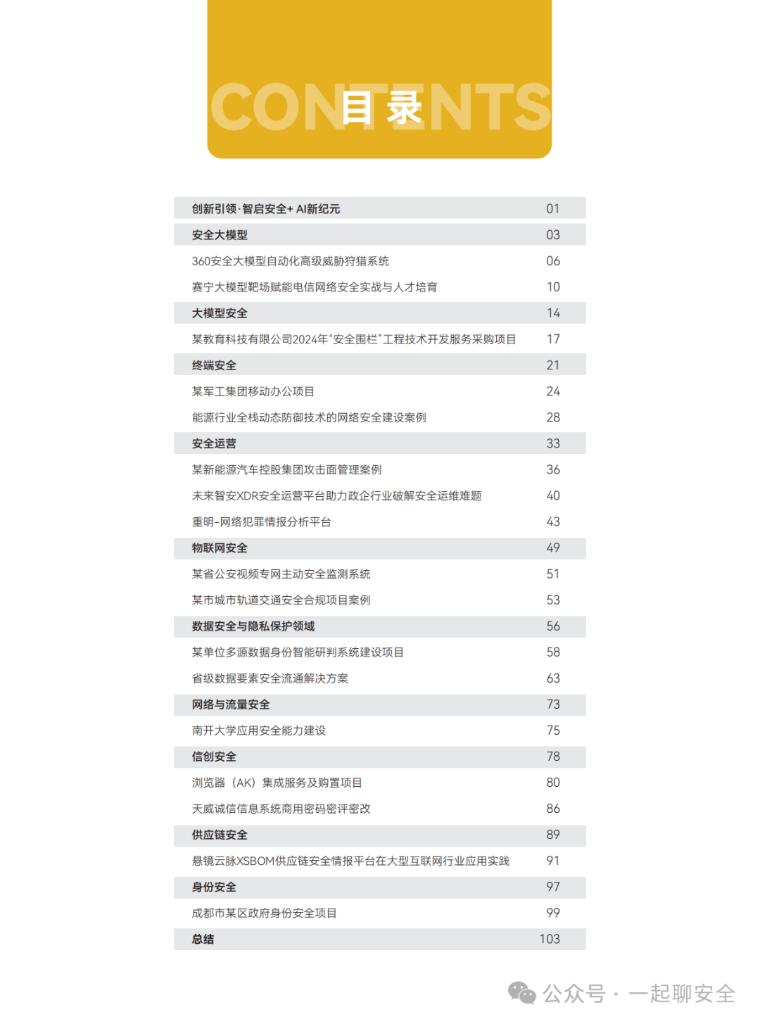 最终评选出17份创新性案例形成报告,覆盖安全大模型、大模型安全、终端安全、安全运营、物联网安全、数据与隐私保护、网络与流量安全、信创安全、供应链安全、身份安全等热点方向,汇聚安全+AI领域的智慧与力量,力求推动安全技术的全球化进步与产业生态的建设,为构建智能、安全的数字化社会贡献力量。