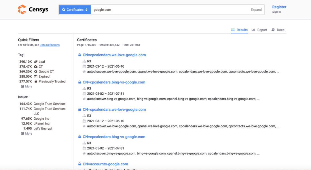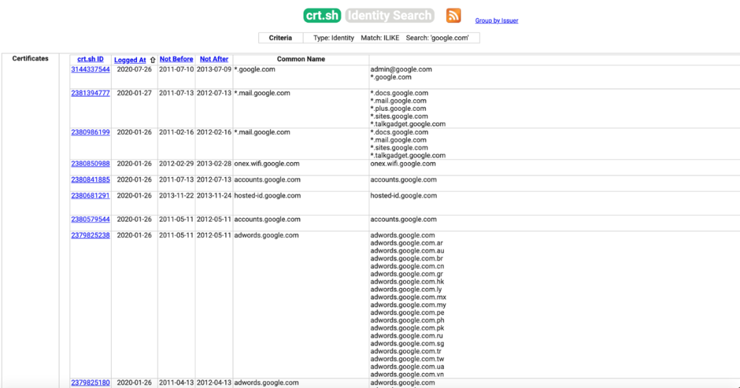 常用的证书查询网站有censys.io crtsh等,可以发现暴力破解无法爆破出来的子域,但同样收录有限。