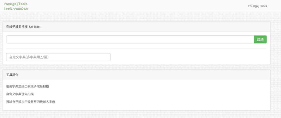 推荐在线子域名扫描工具:YoungxjTools,速度快,内置大量字典且支持自定义字典,本地工具layer也很方便,比YoungxjTools多了端口配置功能。