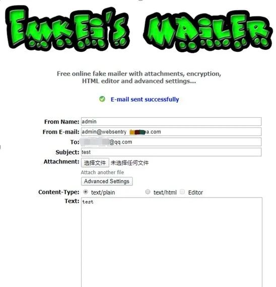 攻击者可以找一个在线smtp发件服务器,伪造发件地址进行钓鱼,以下是某企业邮箱存在SPF邮件伪造的示意图: