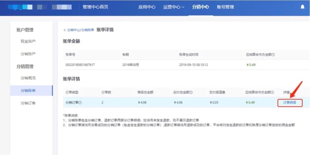 如下是某厂商业务系统的分销中心,提供分销账单的查询功能: