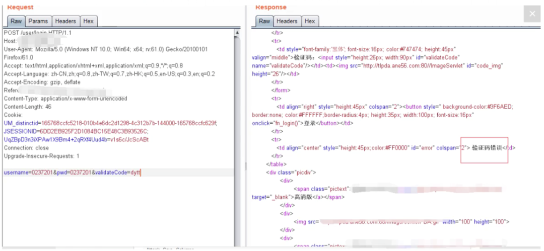 正常当我们输入错误的验证码时,请求会返回验证码错误信息且刷新一次验证码,当我们将客户端刷新验证码的请求hold住时,验证码处会一直停留在原始的验证码,不会再做刷新,此时我们就可绕过验证码刷新并使用burpsuite进行账户密码的暴力破解了。