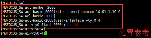 对网络设备的管理登录进行限制,只有受信任的网络地址才可以登录网络设备进行管理,防止攻击员登录设备进行恶意操作。