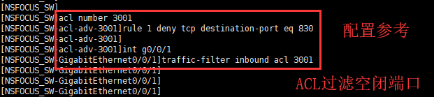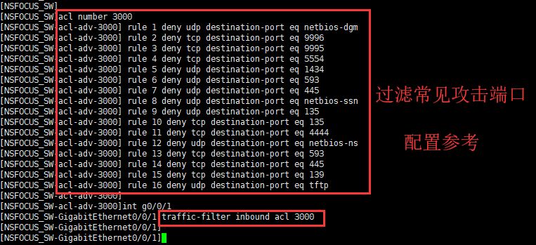 配置ACL过滤常见的漏洞攻击及病毒报文,过滤与业务不相关的流量。