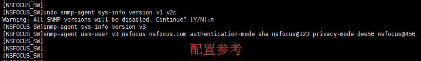 安全加固:禁用SNMPv1或V2c协议,启用v3协议