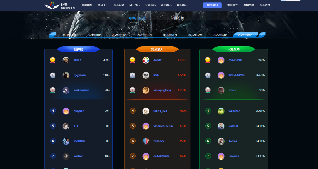 综合性平台比如补天、漏洞盒子和CNVD等等,独家SRC也有很多,比如说华为、阿里、腾讯、360等等。像补天每月排行榜上万的大有人在。