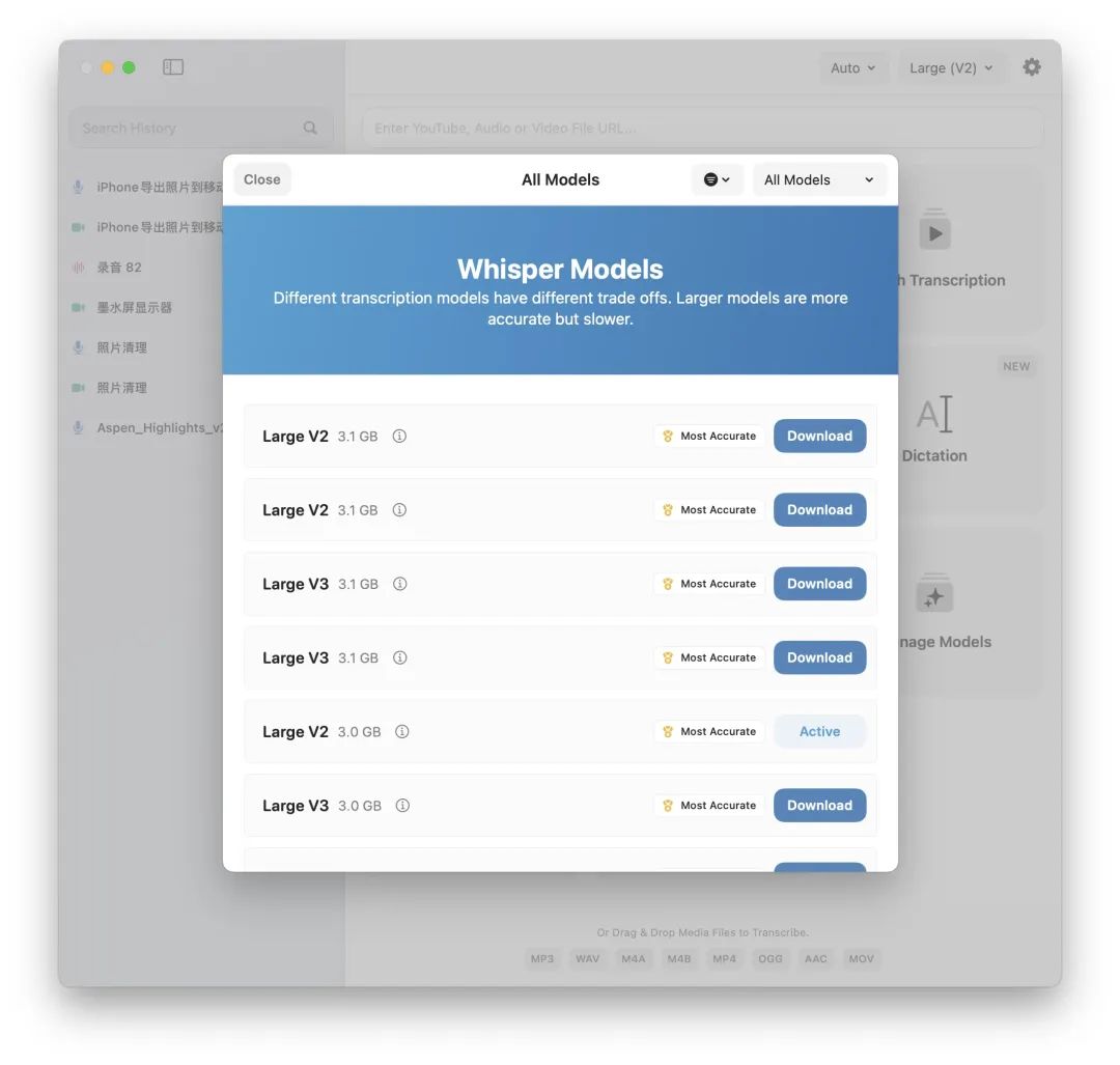 想起来这并不是我第一次在 Mac 本地使用大语言模型,我常用的视频生成字幕工具 macWhisper 也是通过下载本地模型来做识别的,准确性和体验都不错,也不用担心隐私安全问题。