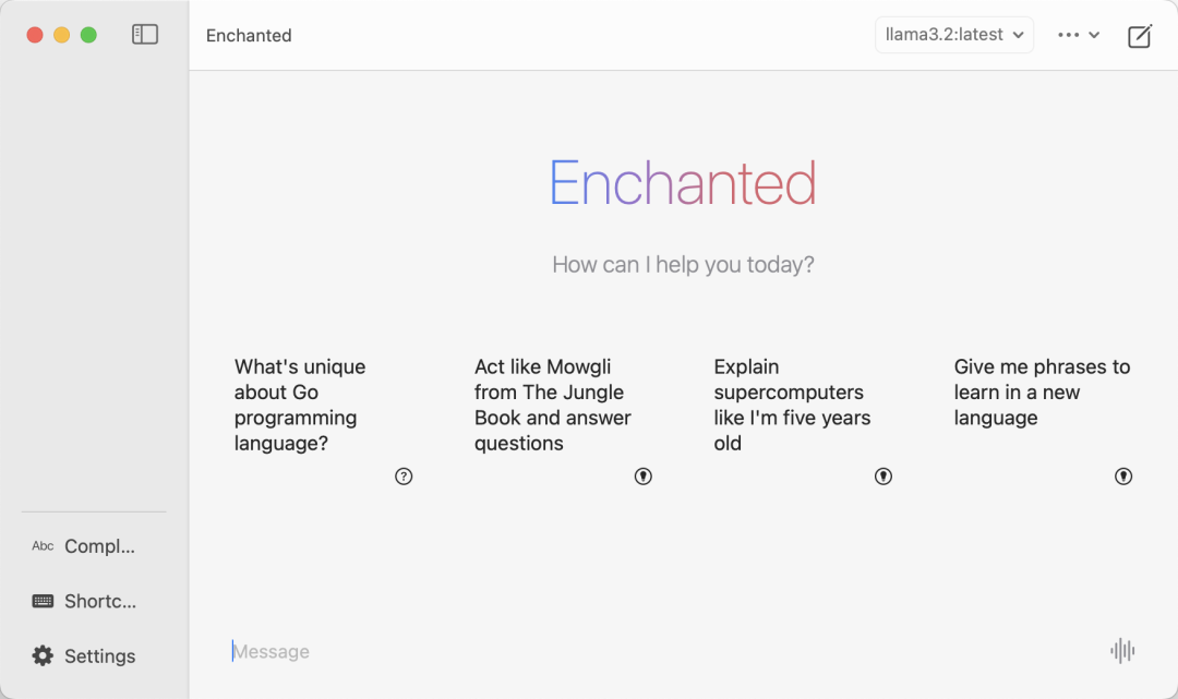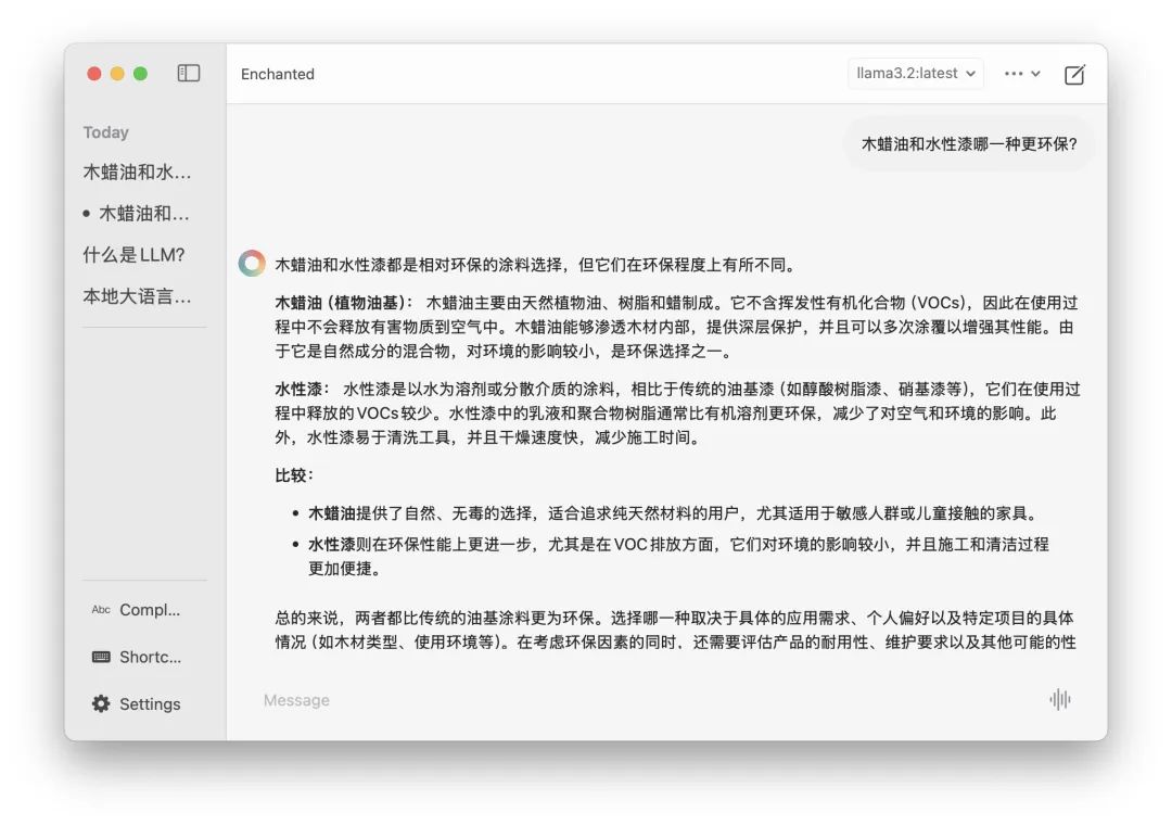 Enchanted LLM 的软件界面是不是跟 ChatGPT 界面很像,而且即是你现在给 Mac 断网,也依然可以使用本地大模型对话。