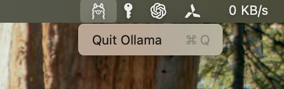 以及 Ollama 程序会保持在后台运行,可以直接在菜单栏点开程序图标来退出。