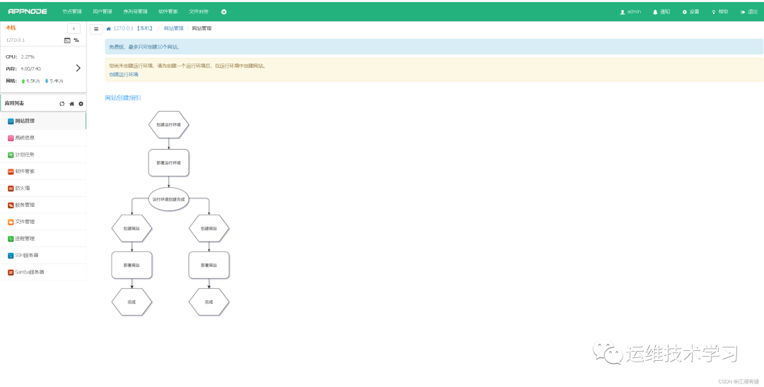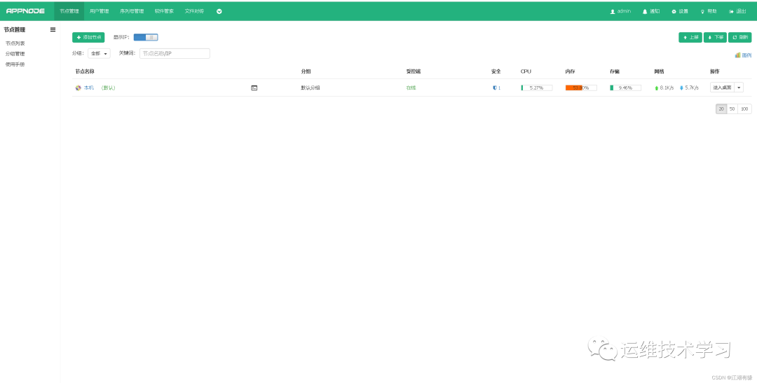 APPNode是一款个人服务器集群管理工具 ,可以通过安装一个控制中心即可管理所有的Linux服务器,当前官方支持个人免费版部署。