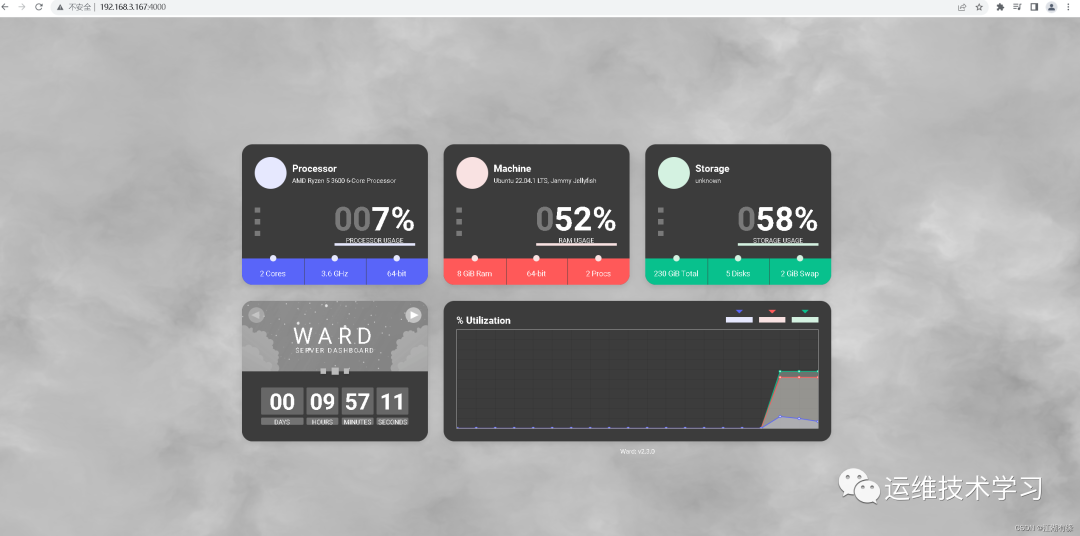 1.部署简单,使用docker可快速部署Ward服务器。 2.web界面非常漂亮,可以监控服务器的主要指标。 3.轻量级,占用资源少。