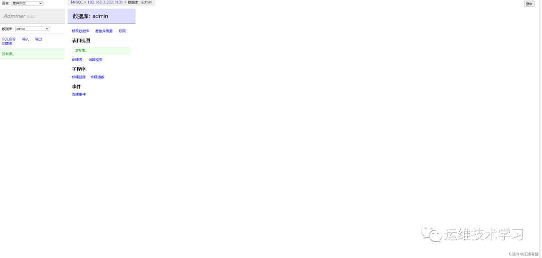 Adminer是用PHP编写的功能齐全的数据库管理工具。与 phpMyAdmin 相反,它包含一个准备部署到目标服务器的文件。Adminer 适用于 MySQL、PostgreSQL、SQLite、MS SQL、Oracle、Firebird、SimpleDB、Elasticsearch 和 MongoDB。