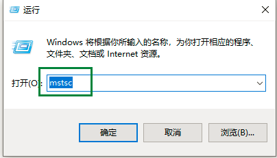 ②在运行窗口中输入mstsc并点击确定,如下图所示;