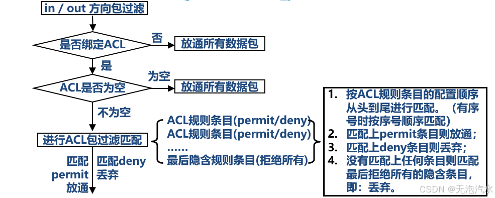 每个接口的每个方向(入/出)只能绑定一条ACL,两个方向都可以绑定