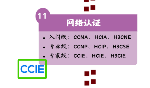 HCIE(华为认证 ICT 专家):华为最高级别认证,考察复杂企业网络的架构与运维能力。