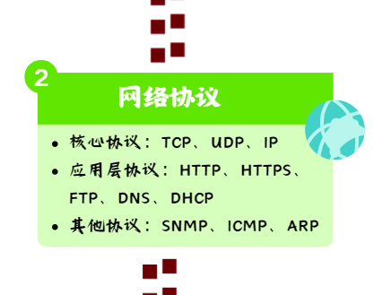 DNS:将域名解析为 IP 地址,是互联网的“电话簿”。
