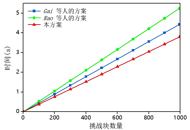 经过理论分析和实验测试,我们验证了所提出的区块链辅助的云边系统盲化数据审计方案在性能与安全性方面的有效性。一方面,方案在保障数据隐私与审计结果可信性的基础上,避免了传统方法中对第三方完全信任的隐患;另一方面,通过优化链上智能合约的设计与链下计算环节的开销控制,实现了在资源受限环境下的高效性与轻量化。综合评估结果表明,所提方案不仅具备良好的实用性与可行性,同时在计算与通信开销方面也表现出一定的优势,能够为实际云边协同场景中的数据完整性审计提供支撑。