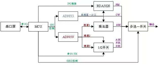 基于串口屏设计界面,实现调制信号控制、信号输出路径切换等功能;