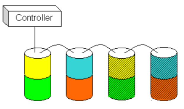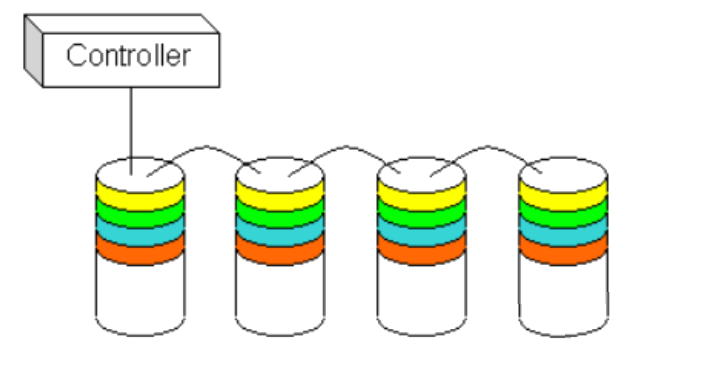 磁盘阵列是由很多价格较便宜的磁盘, 组合成一个容量巨大的磁盘组,利用个别磁盘提供数据所产生加成效果提升整个磁盘系统效能。利用这项技术,将数据切割成许多区段,分别存放在各个硬盘上。