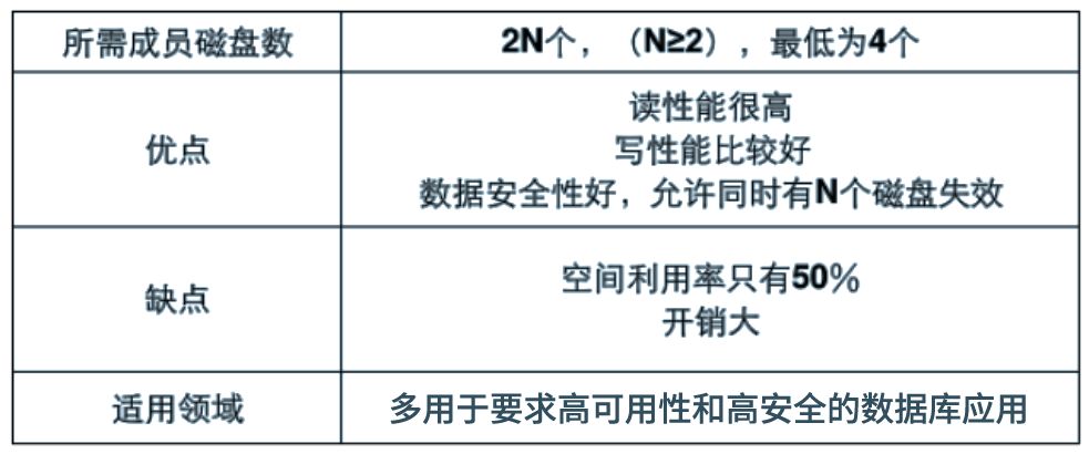RAID 10适用于数据库存储服务器等需要高性能、高容错但对容量要求不大的场合。