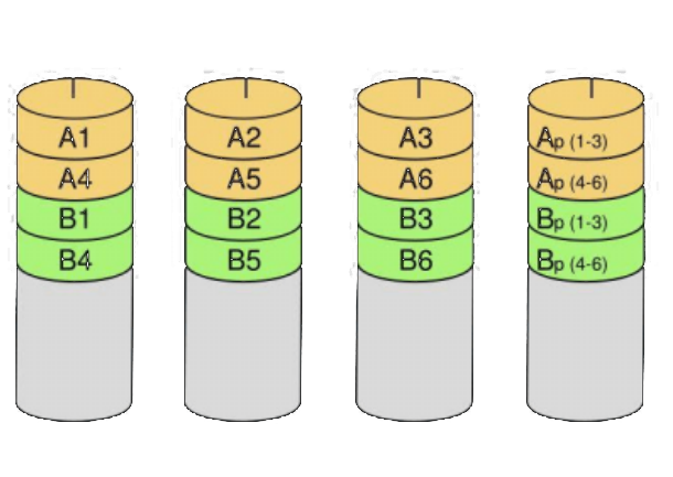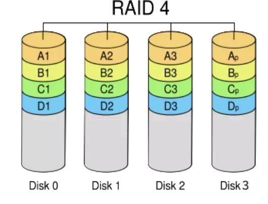 RAID 4 具备多任务及容错功能 Parity 磁盘驱动器造成性能瓶颈