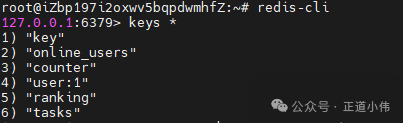 👉 说明 Redis 里当前有 6 个 key,keys * 一次性把它们全扫描出来。