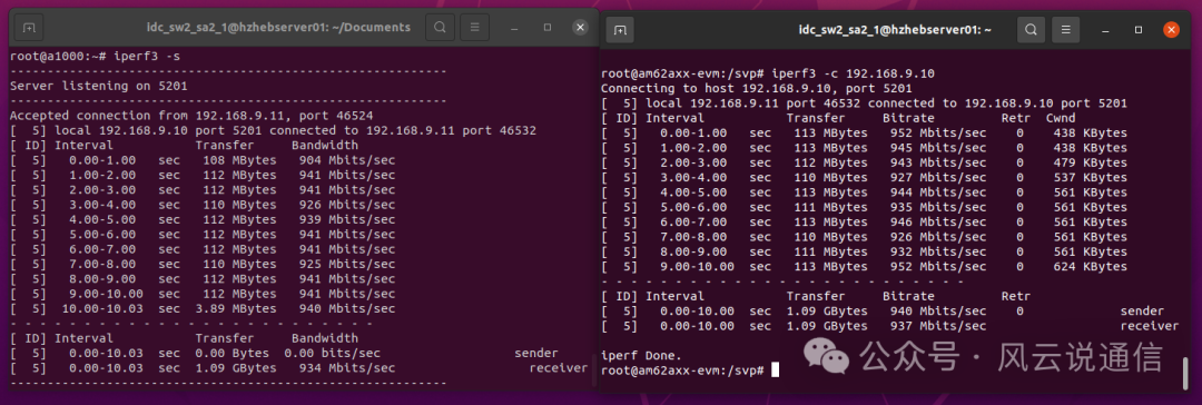 iperf3 -s -p 8801 # serveriperf3 -c 192.168.9.10 -p 8801 # client