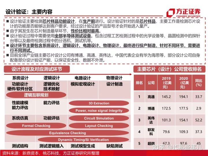 最下面一栏标注了各个设计环节中对于测试的相关考虑,从测试架构、测试逻辑设计、测试模式产生、到各种噪声/延迟/失效模式综合、进而产生测试pattern,最后在制造完成后进行测试,对测试数据进行分析,从而分析失效模式,验证研发。