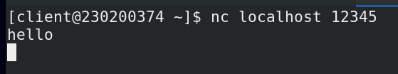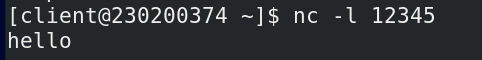 输入命令按回车键,这个时候12345这个端口号已经被服务器A监听,光标处于等待状态。我们保留这个终端界面不动,开启一个新的终端页面,把这个新的终端作为服务器B,在上面输入命令来连接12345这个端口。