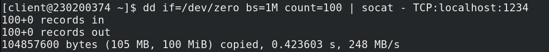 if=/dev/zero:从零设备读取数据(生成全零字节)bs=1M:块大小 = 1MB(可调整)count=100:传输 100 个块 → 总计 100MB