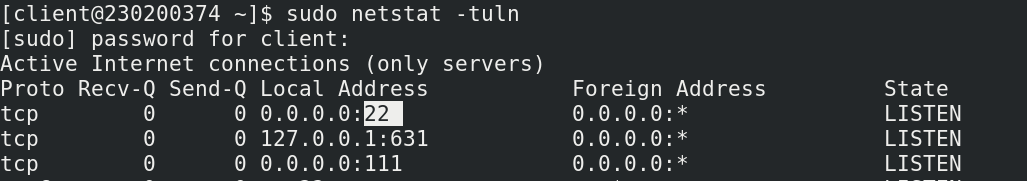 测试已经开放服务的端口号22:可以看到显示端口已经开放了
