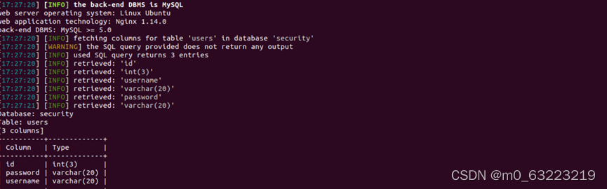 sqlmap.py -u “http://localhost/sqlilabs/Less-1/?id=1(目标链接)” -D”security”-T users –colunms