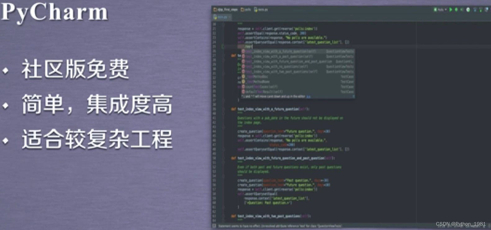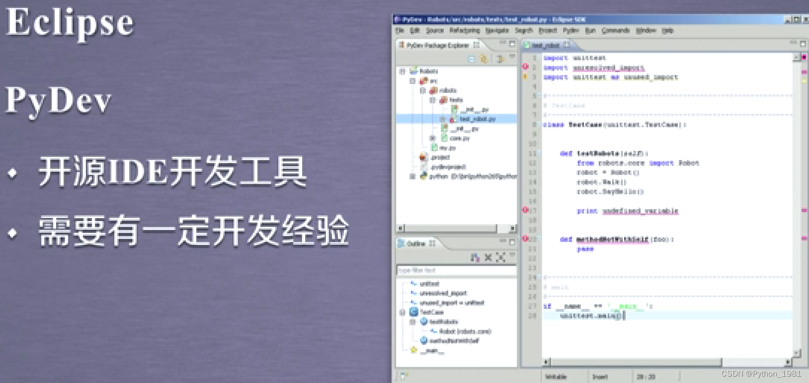 Eclipse是早年专门为Java程序员使用的开发工具,但可以通过PyDev配置python的开发环境,需要自定义很多参数,比较费劲。
