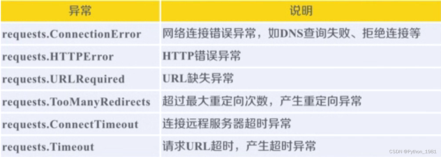 在使用Requests库进行页面访问时,经常使用request.get(url)获取指定URL的相关内容,但并不是总能正确获取,因为网络连接有风险,这时对于这样的语句的异常处理很重要。