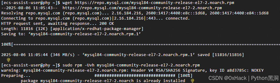 sudo rpm -Uvh mysql84-community-release-el7-2.noarch.rpm