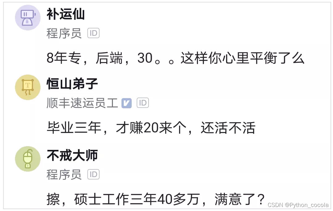 近日,只职场论坛脉脉上看到一个热帖,发帖人称:为什么大家工资那么高,三五年都六七十万了?我二本计算机专业,四年前端开发,找个年包40万多点就顶头了。