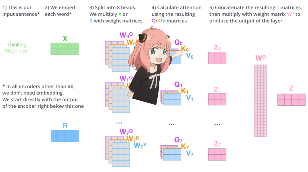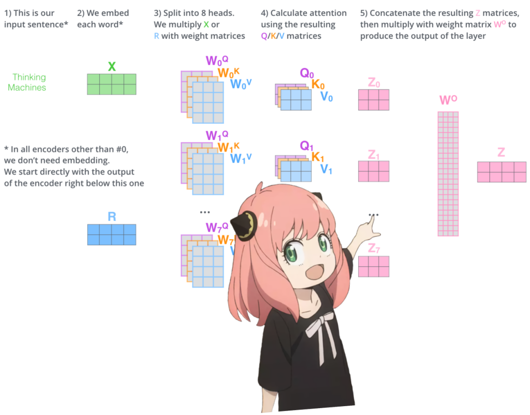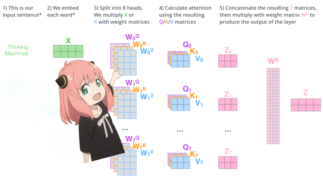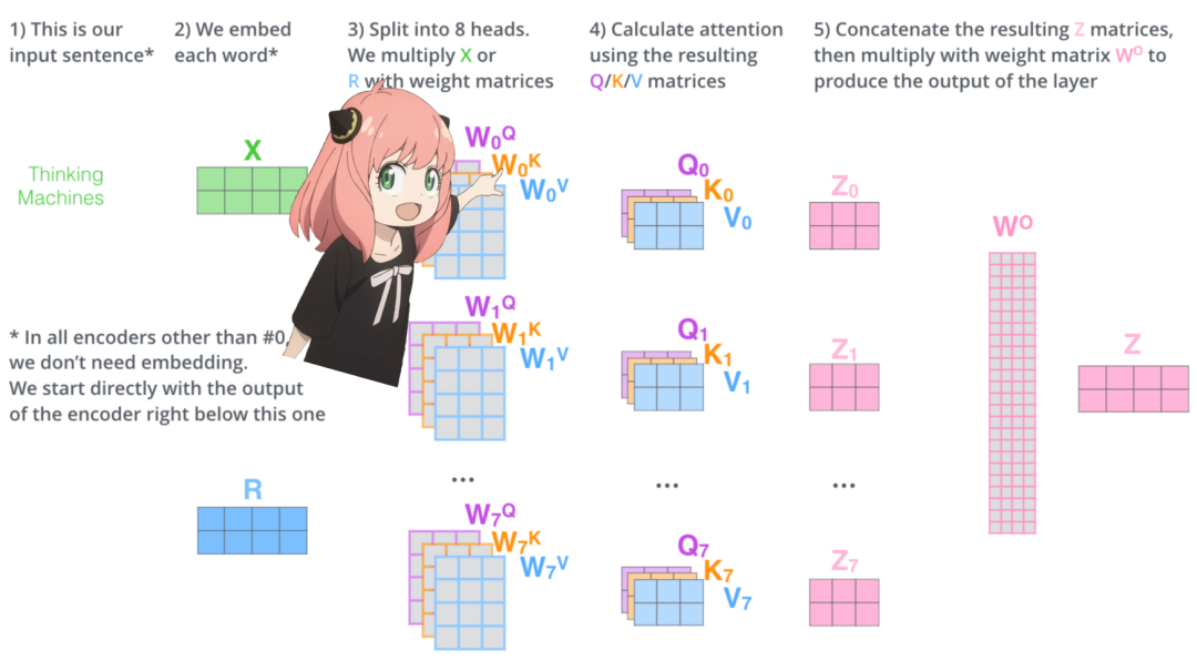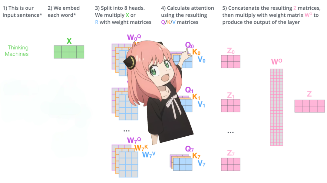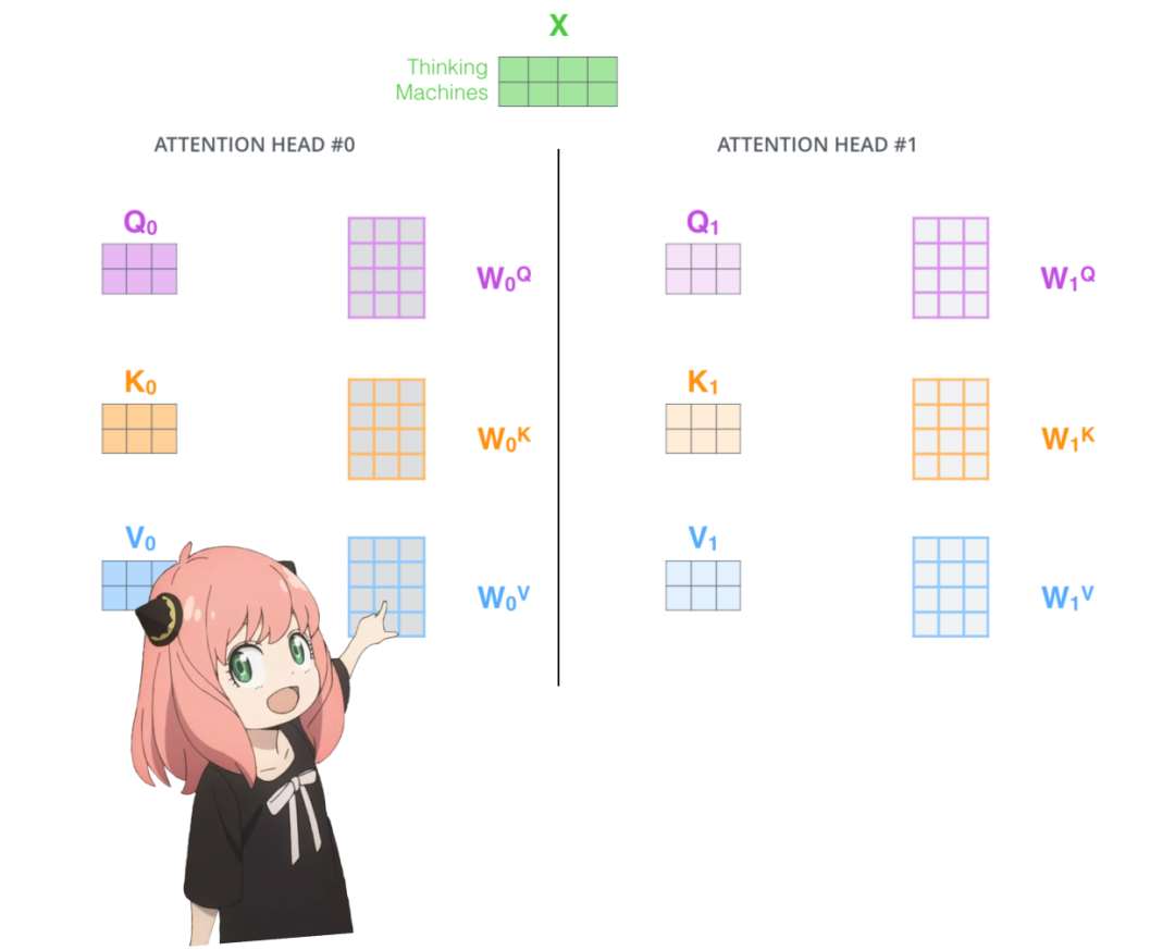 第 0 层注意力要做的最后一件事是,对以下的权重矩阵进行乘法操作。
