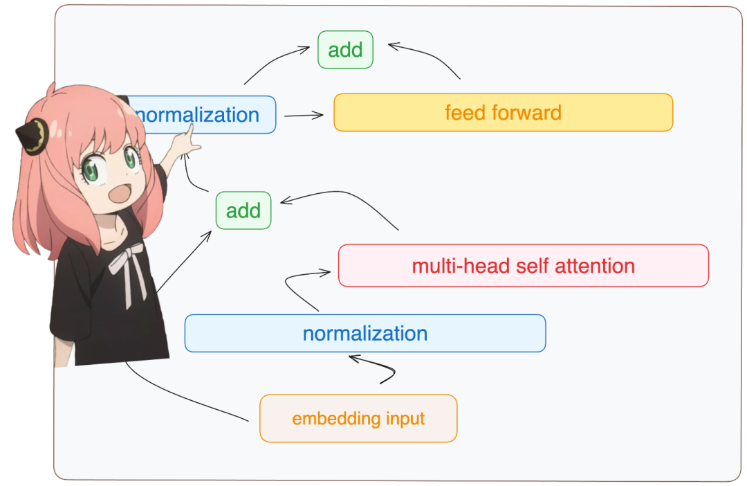 将嵌入进行归一化。该研究使用均方根 RMS 算法进行归一化。不过,在这一步之后,张量形状不会改变,只是值进行了归一化。