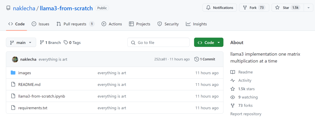 近期,有位名为「Nishant Aklecha」的开发者发布了一个从零开始实现 llama3 的存储库,包括跨多个头的注意力矩阵乘法、位置编码和每个层在内都有非常详细的解释。项目初期就已在 GitHub 上收获了 1.5k 的 star,足可见其含金量!