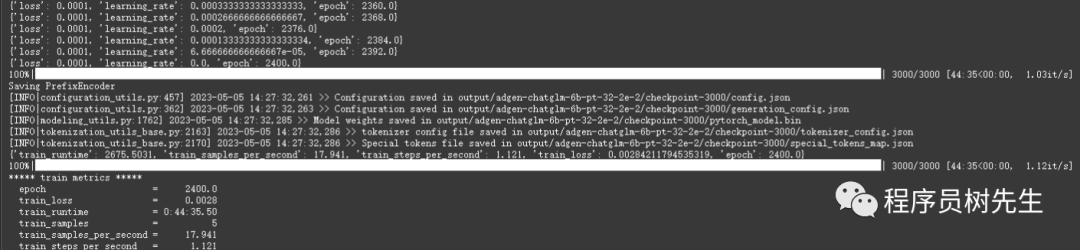 PRE_SEQ_LEN=32 LR=2e-2 CUDA_VISIBLE_DEVICES=0 python3 main.py \ --do_train \ --train_file train.json \ --validation_file dev.json \ --prompt_column content \ --response_column summary \ --overwrite_cache \ --model_name_or_path /mnt/workspace/chatglm-6b \ --output_dir output/adgen-chatglm-6b-pt-$PRE_SEQ_LEN-$LR \ --overwrite_output_dir \ --max_source_length 128 \ --max_target_length 128 \ --per_device_train_batch_size 1 \ --per_device_eval_batch_size 1 \ --gradient_accumulation_steps 16 \ --predict_with_generate \ --max_steps 3000 \ --logging_steps 10 \ --save_steps 1000 \ --learning_rate $LR \ --pre_seq_len $PRE_SEQ_LEN \ --quantization_bit 4