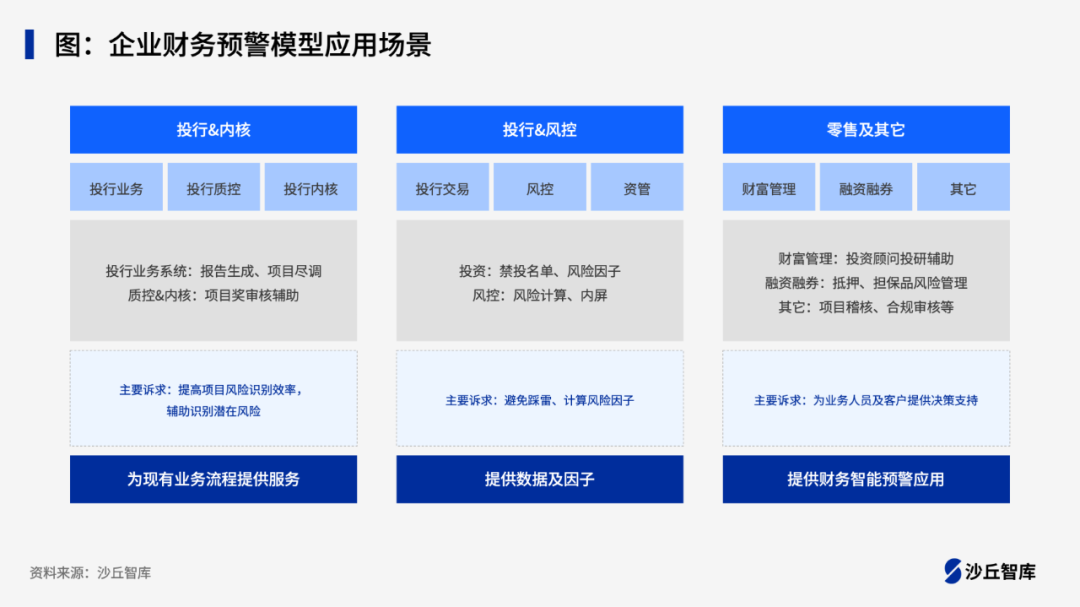 广发证券基于大模型构建企业财务风险预警模型,识别人工难以识别的潜在风险,降低项目审核、尽调、投研成本,提高工作效率,且与传统专家规则模型、机器学习模型相比,精度更高、效果更好。目前,企业财务智能预警平台已经覆盖广发证券投行、风控、投资自营、财富管理等多个业务条线。